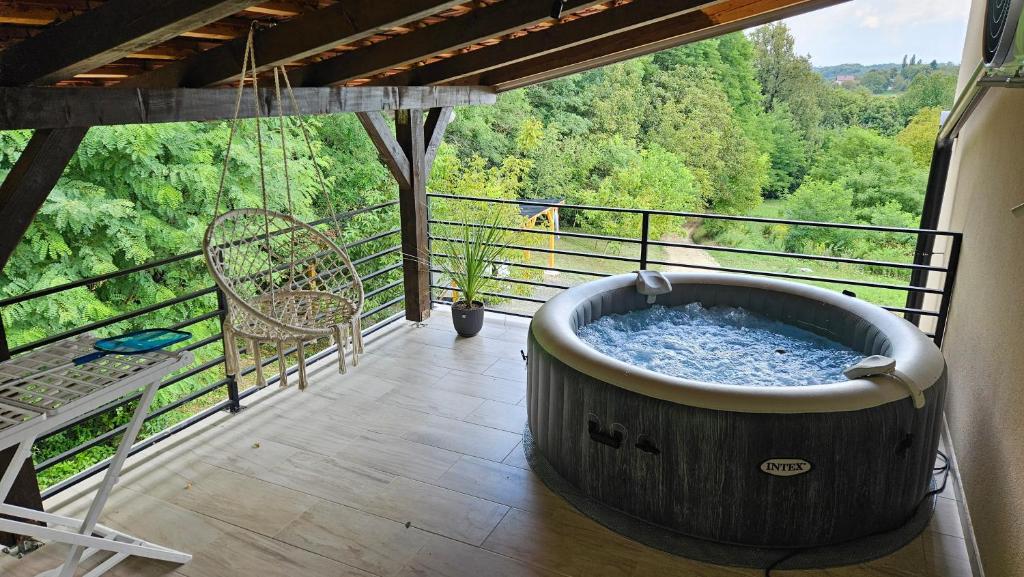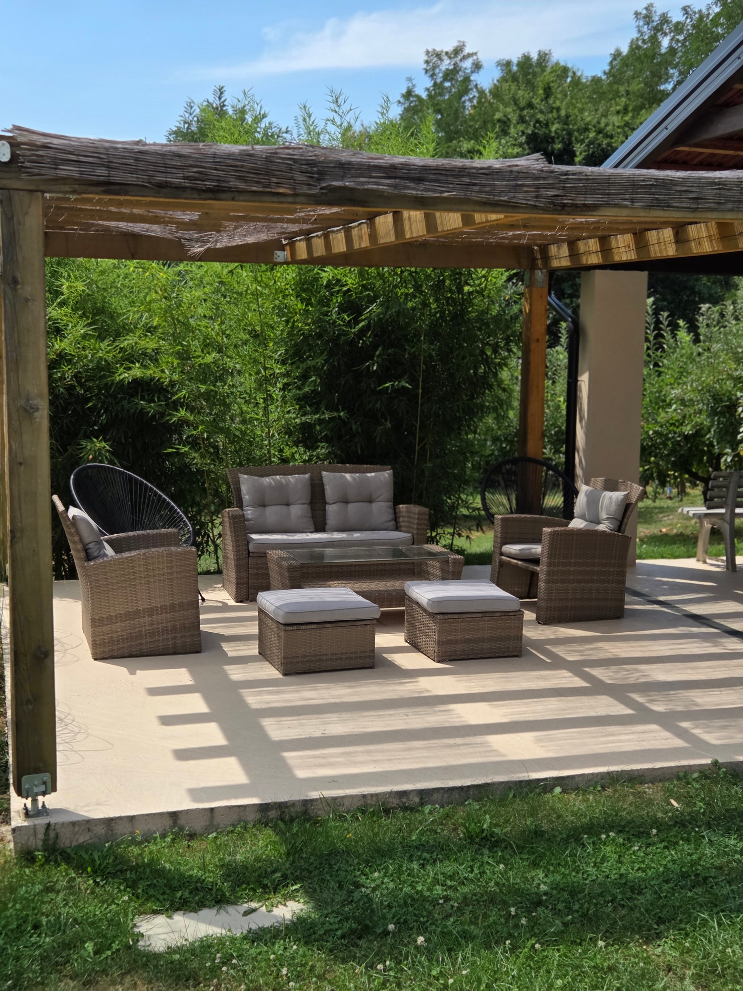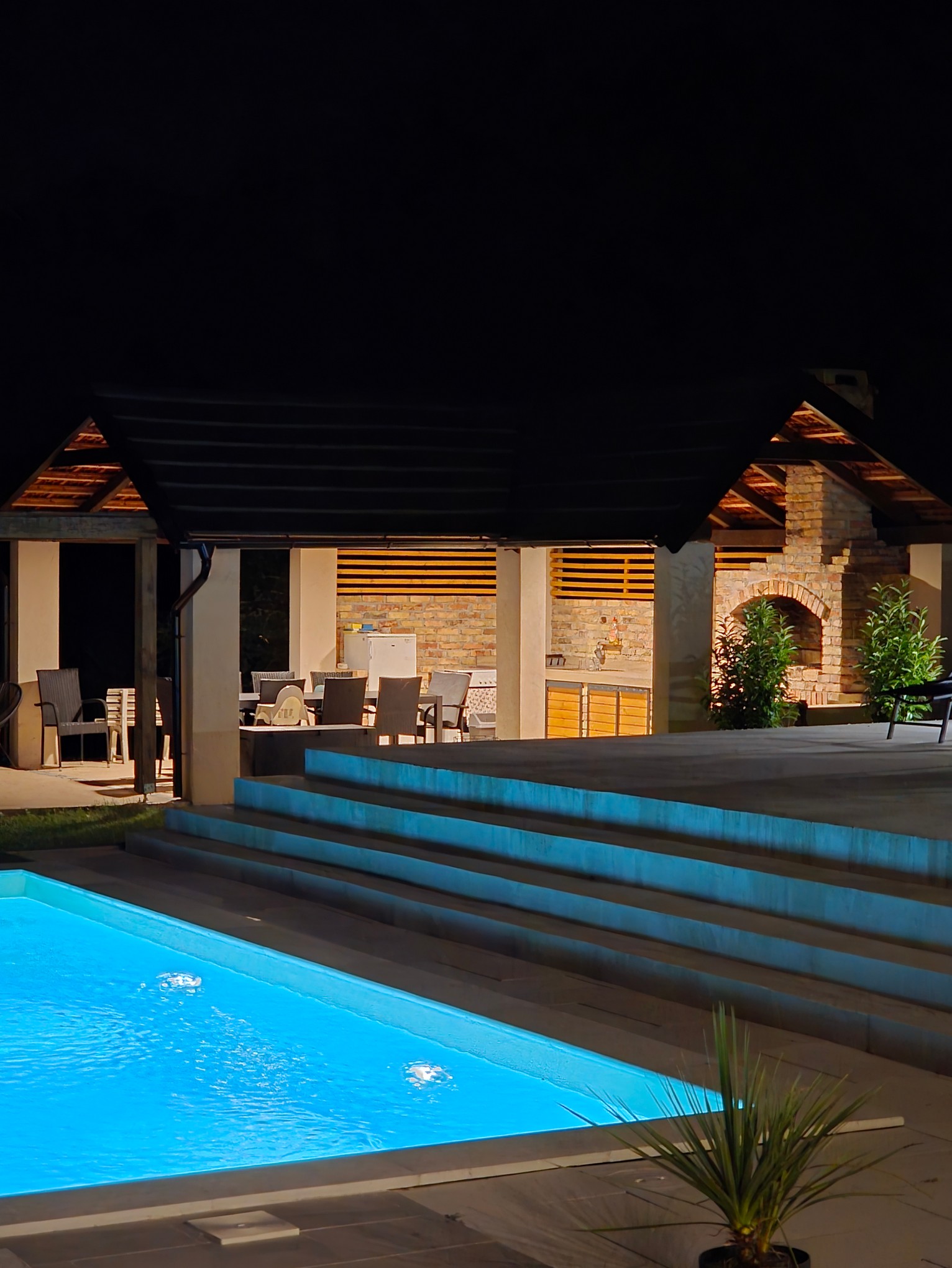 Uživajte u grijanom bazenu, vanjskom jacuzziju, sunčalištu s ležaljkama i prostranoj terasi s pogledom na prirodu. Vanjska kuhinja i roštilj stvaraju savršen ambijent za druženje i opuštene večeri na otvorenom.